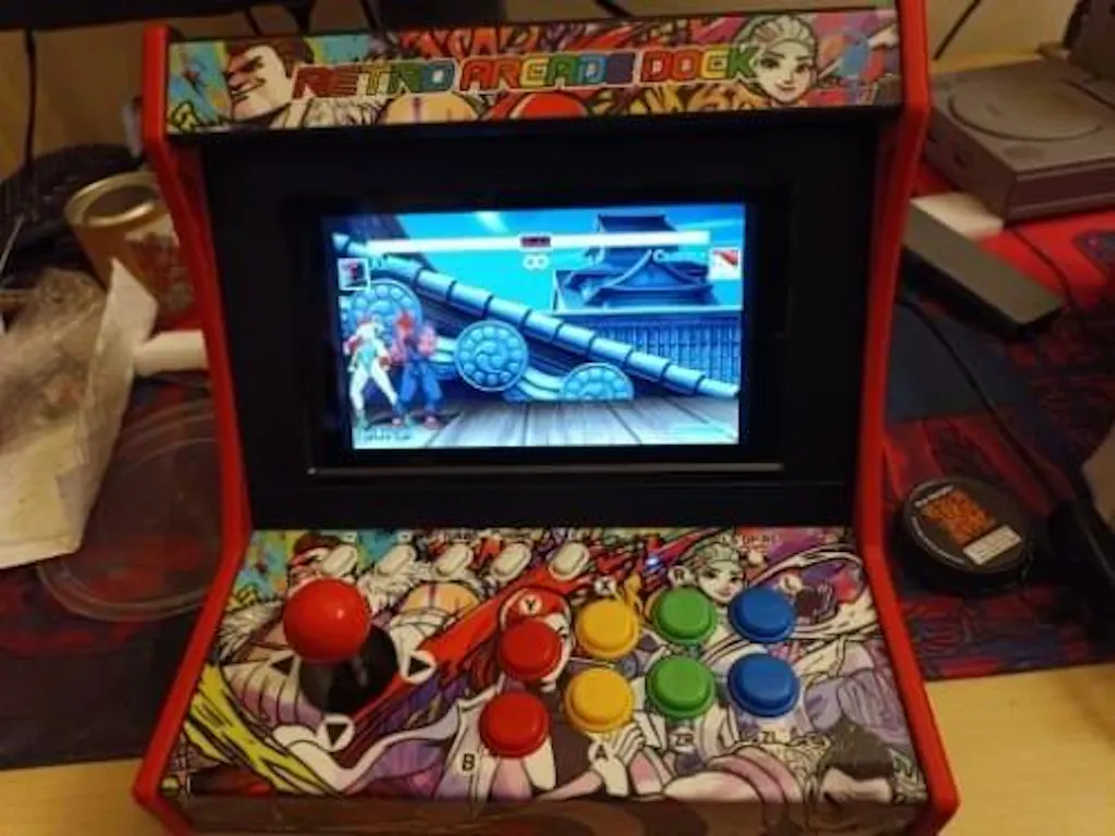 Grafica arcade, struttura compatta e pulsanti colorati: ogni dettaglio richiama l’estetica dei cabinati classici, adattata al gaming moderno.